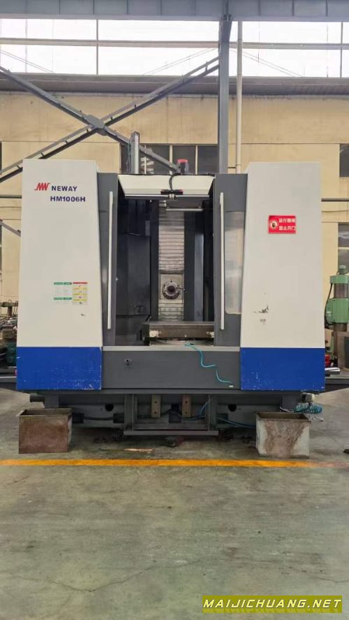 纽威1米单工位卧加。型号HM1006H单工位卧加,发那科系统,国企航空研究所使用,BT50主轴10000转高速机,双速电机,开机几千小时,三轴行程1600/1180/1050,B轴千分之一度,40把刀库,带油冷机,带中心冲水!